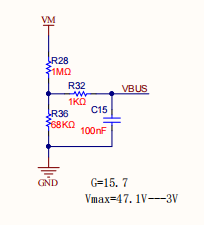 母線電壓采樣電路,通過電阻分壓送到芯片AD口,參與運算。